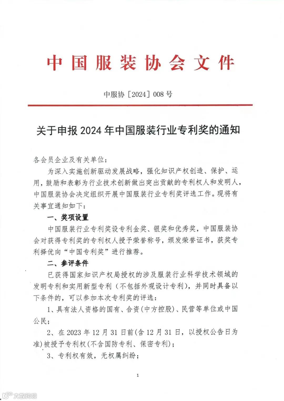 为深入实施创新驱动发展战略,强化知识产权创造、保护、运用,鼓励和表彰为行业技术创新做出突出贡献的专利权人和发明人,中国服装协会决定组织开展中国服装行业专利奖评选工作。现将有关事宜通知如下: