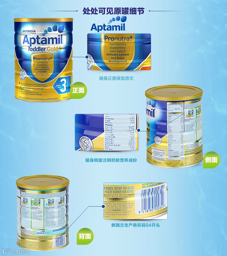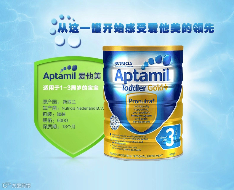Aptamil 婴幼儿金装配方奶粉 3段1岁 900g2罐