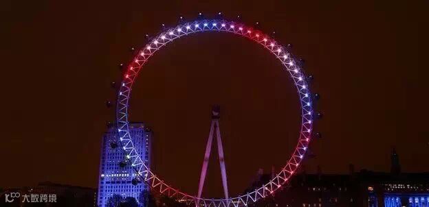 “伦敦眼”摩天轮也换成了粉色灯光: