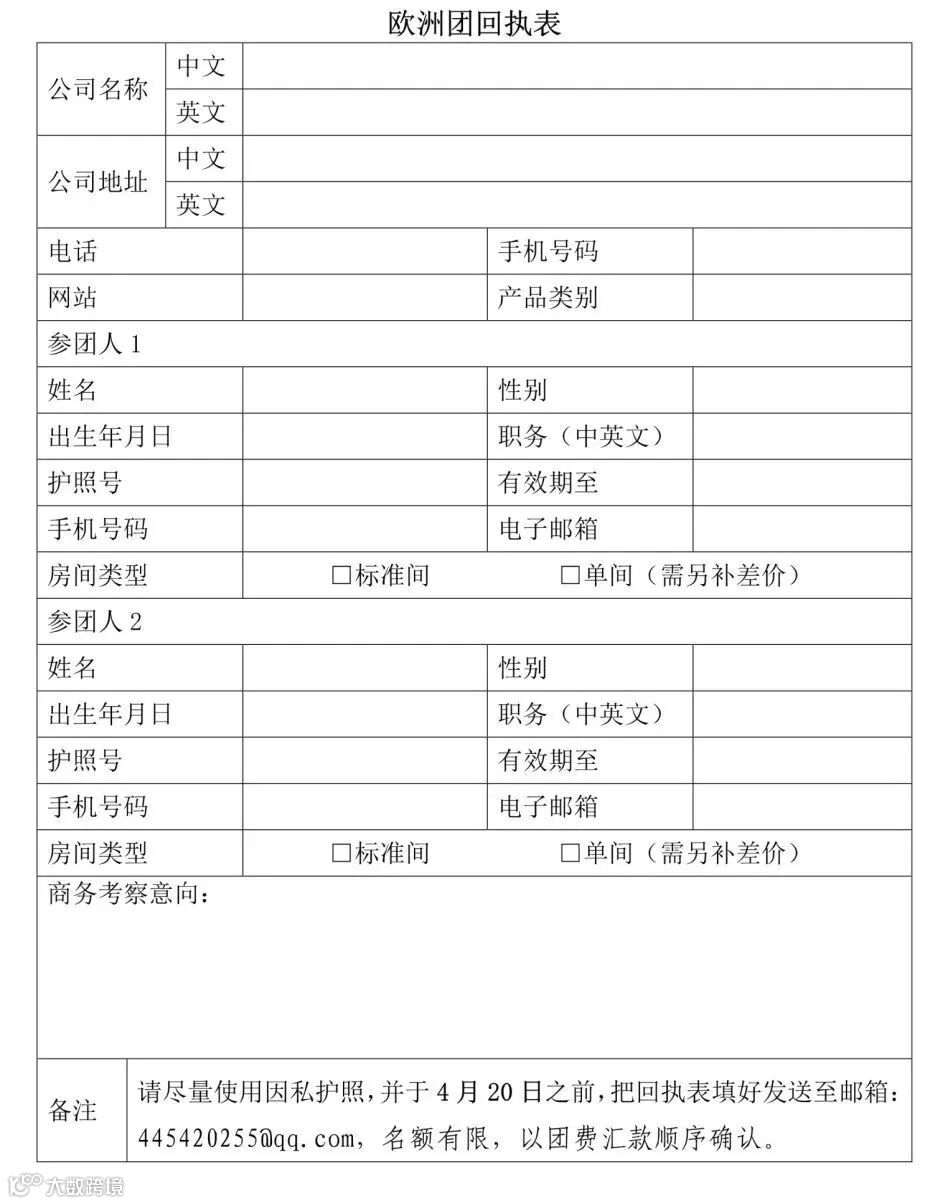 附件2:欧洲团回执表