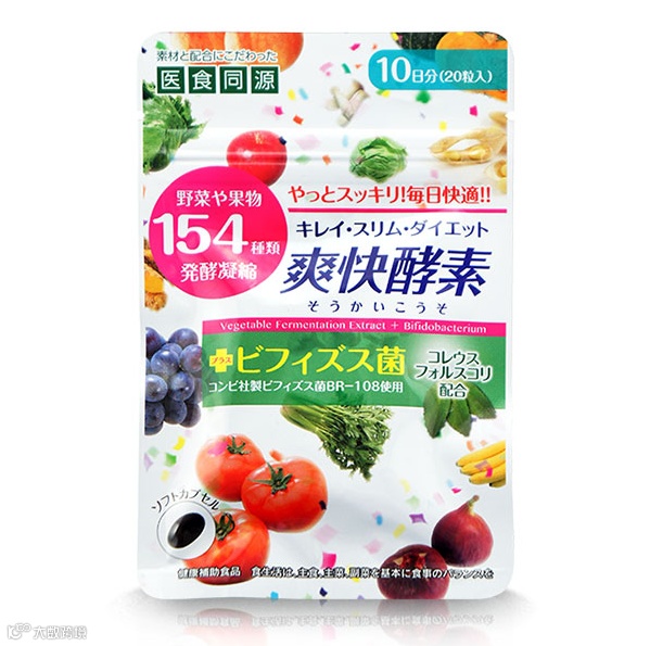 日本爽快酵素粒 神奇植物弗斯可林×双歧乳酸菌 1袋20粒