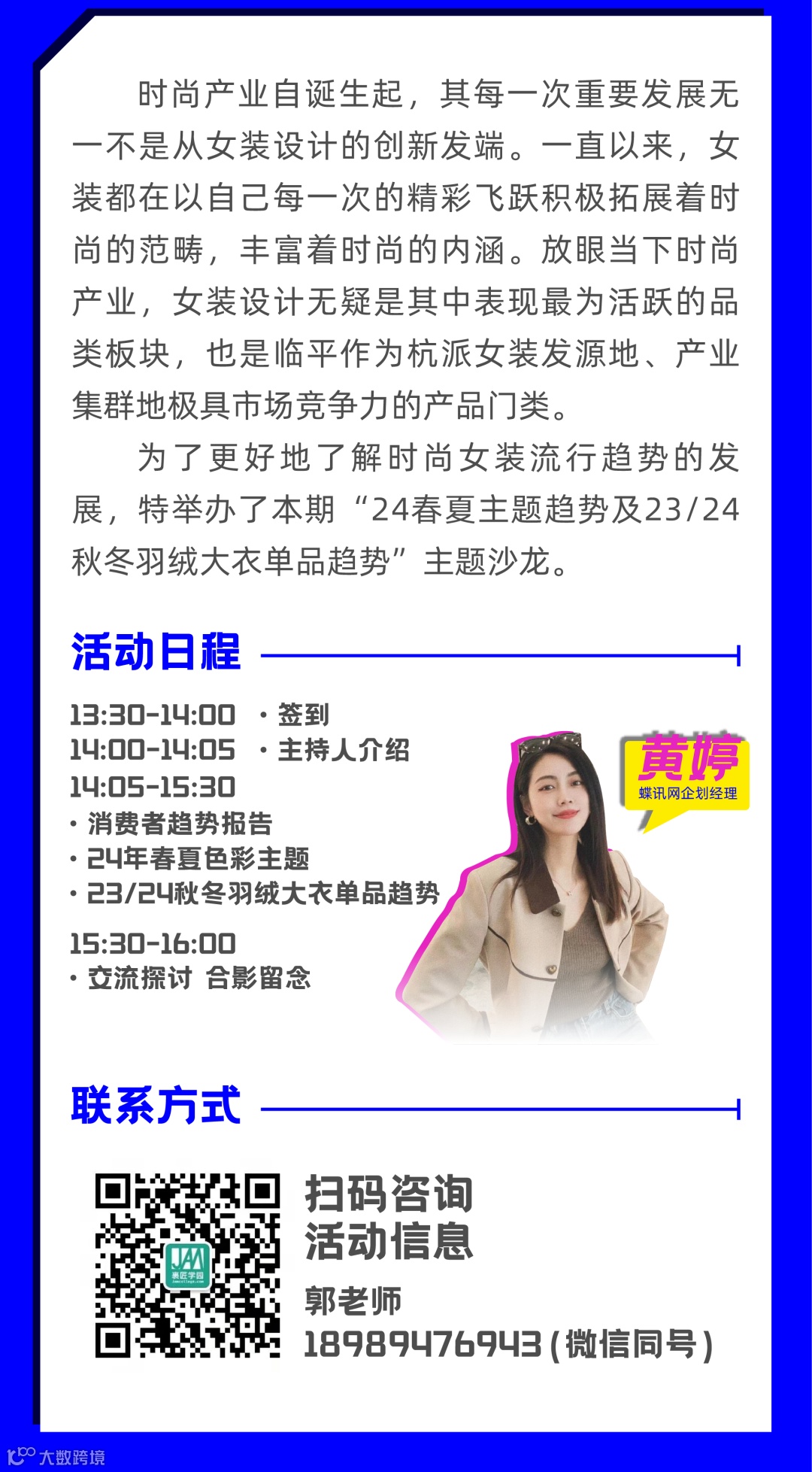 倒计时5天!24春夏主题趋势及23/24秋冬羽绒大衣单品趋势主题沙龙活动将于6月21日举办!