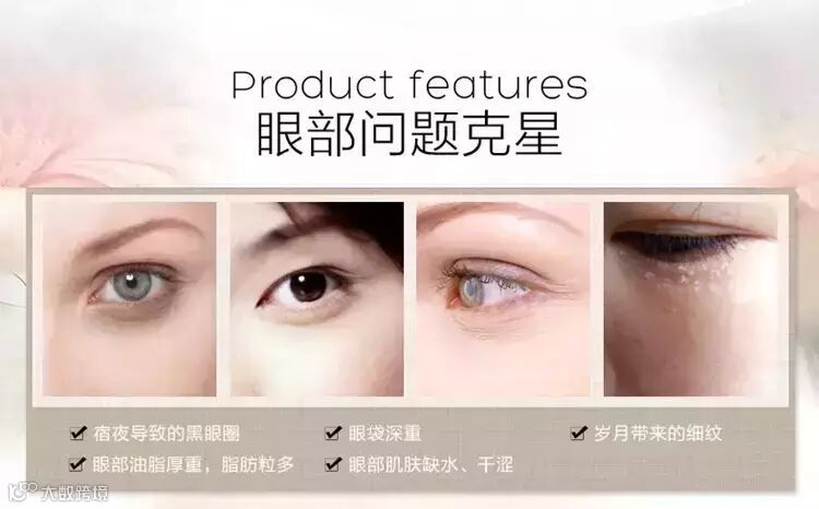宿夜导致的黑眼圈、眼袋深重、岁月带来的细纹、眼部油脂厚重,脂肪粒多、眼部肌肤缺水,干涩;