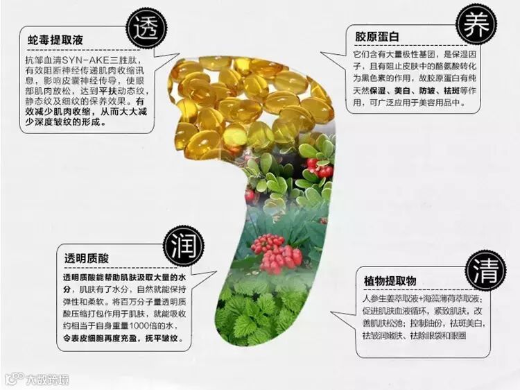 这款眼膜选取了蛇毒提出液,提取出的抗皱血清有效地减少脸部肌肤皱纹的产生。