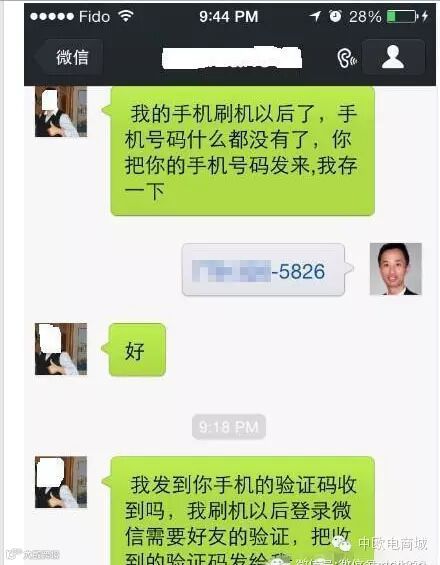 他:我的手机刷机后,手机号码什么都没有了,你把你的手机号码发来,我存下