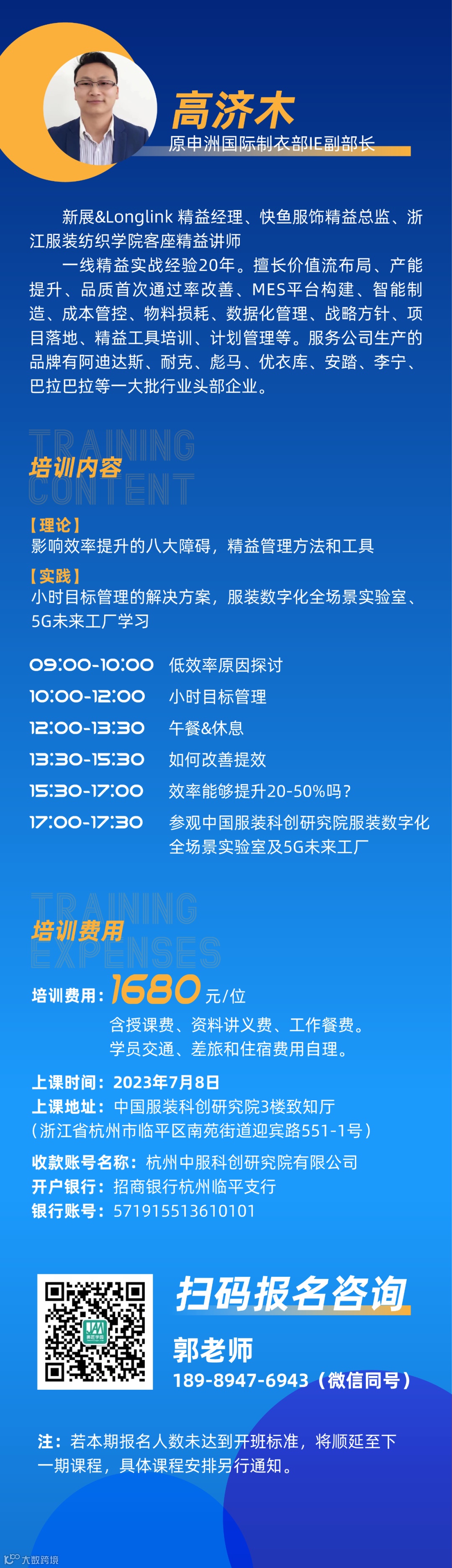 服装行业精益生产管理实训班开班倒计时3天! 中服科创研究院