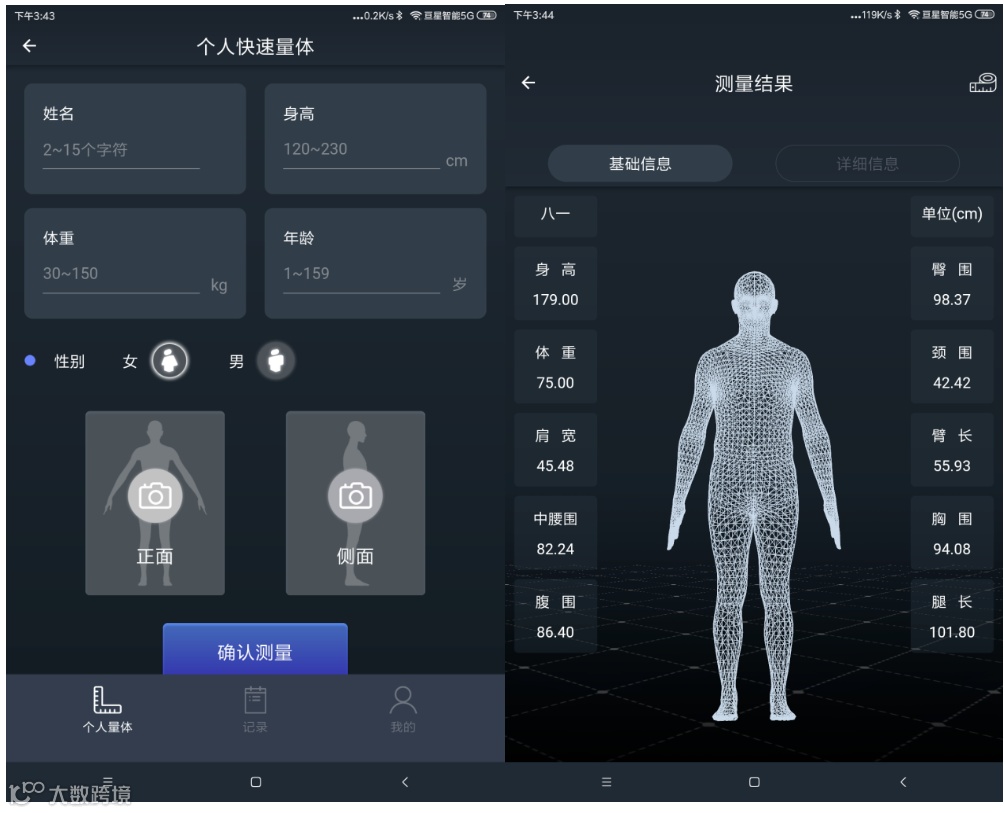 · 支持自然着装测量,被测量者无需身着紧身衣即可拍照量体;