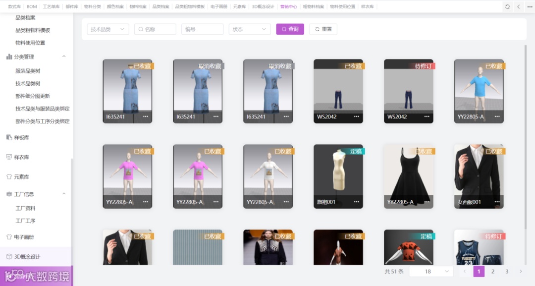 · 通过 AI 搜索历史款式,在线复用,增删改查,3D 快速研发新款式;