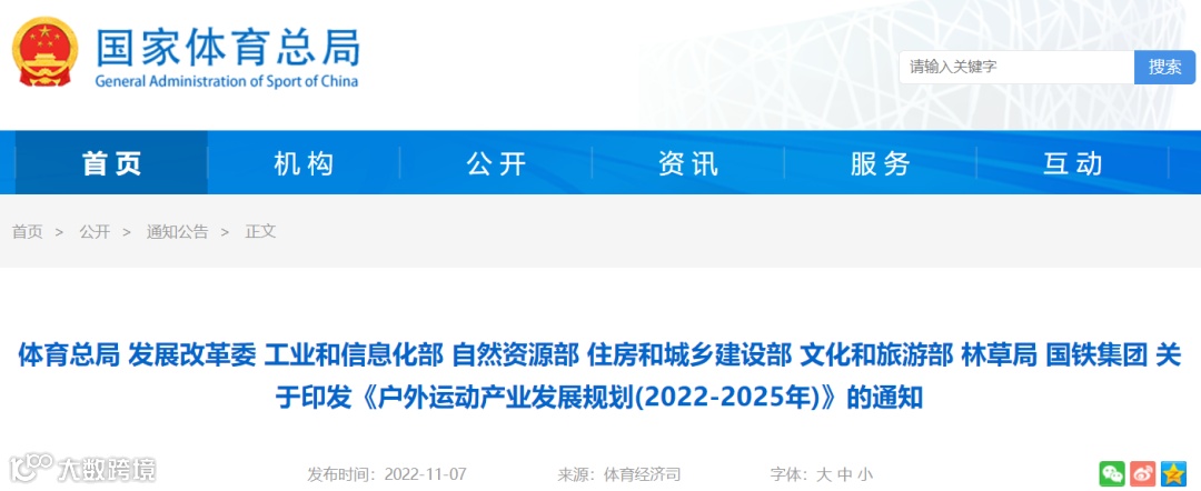 日前,国家体育总局等八部门共同印发了《户外运动产业发展规划(2022-2025年)》。《规划》提出,到2025年,户外运动产业高质量发展成效显著,基本形成供给与需求有效对接、产业与生态协调发展、产品与服务品牌彰显、业态与模式持续创新的发展格局。户外运动场地设施持续增加,普及程度大幅提升,参与人数不断增长,户外运动产业总规模超过3万亿元。
