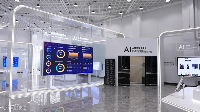 再往里走,一个宽敞酷炫的现代化科技展示厅让人眼前一亮。“展厅分为两部分:一个是服装数字化场景实验室,包括流行趋势智慧研判、智慧零售、AI定制、智能研发等,集中呈现服装数字化驱动的全新产业逻辑;另一个是5G未来工厂实验室,服装行业最前沿的技术设备都将在这里得到检验和展示。”徐丙顺娴熟地介绍着。