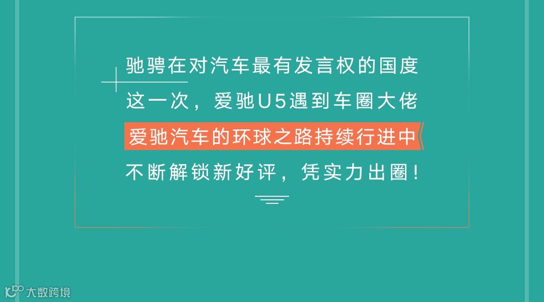 导读:爱驰U5的环球之路持续进行中,不断解锁新好评,凭实力出圈!