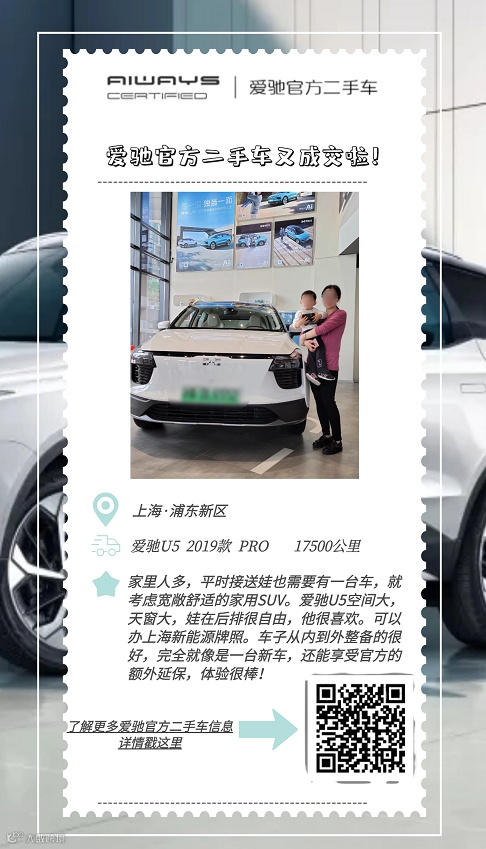 爱驰认证二手车由爱驰汽车官方打造,贯彻 “以爱之名,焕然犹新”的品牌理念,甄选优质车源,通过包含检测、整备、增值、售后等一系列认证体系,为用户提供灵活、放心、省心的爱驰二手车服务体验。