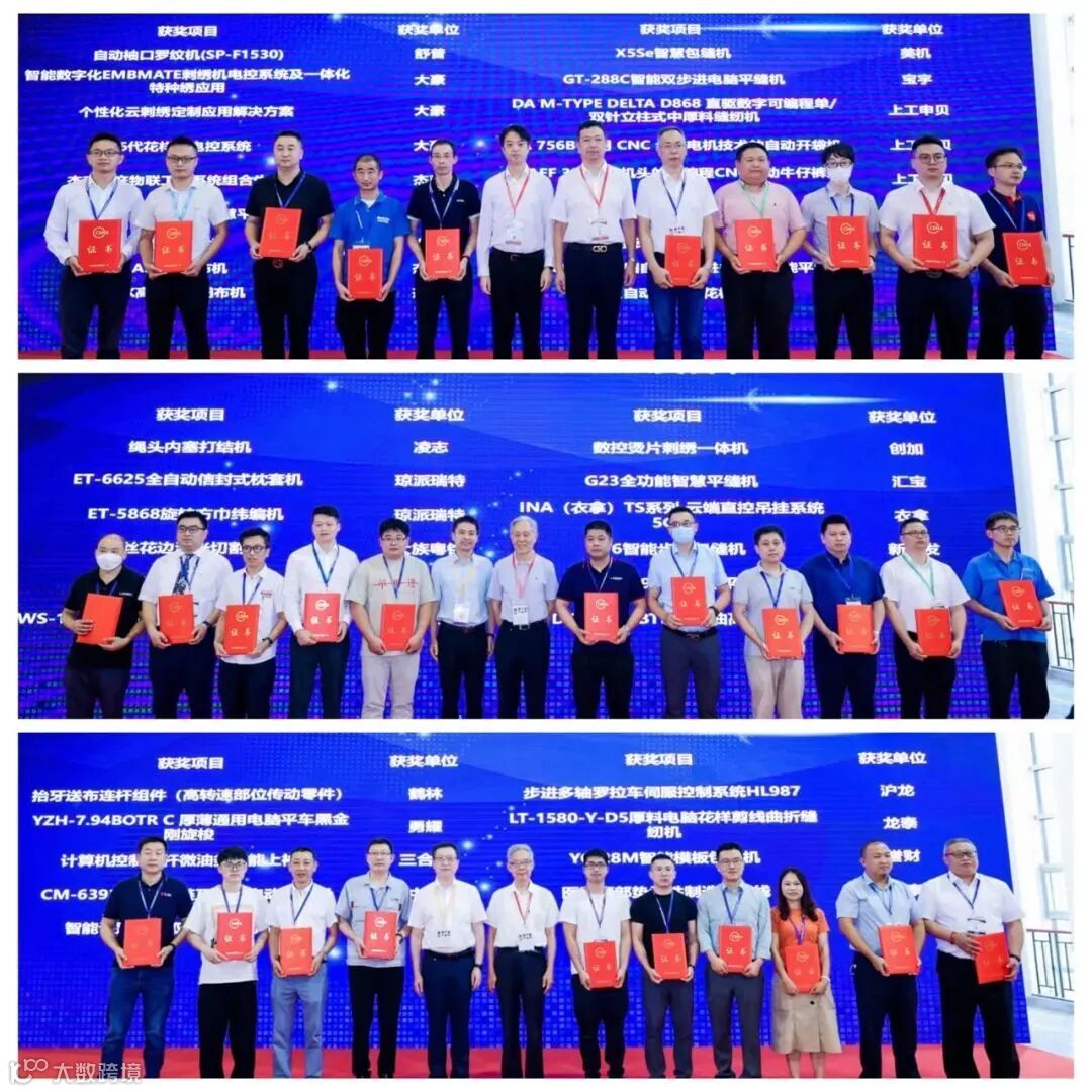 论坛期间举行了CISMA2021主题示范产品颁奖仪式。中国缝制机械协会理事长杨晓京、副理事长兼秘书长陈戟,中国服装协会常务副会长、中国服装科创研究院院长杨金纯,中国缝制机械协会副理事长吴吉灵、原理事长田民裕、原副理事长王承康等领导先后上台,为获选企业代表进行颁奖。