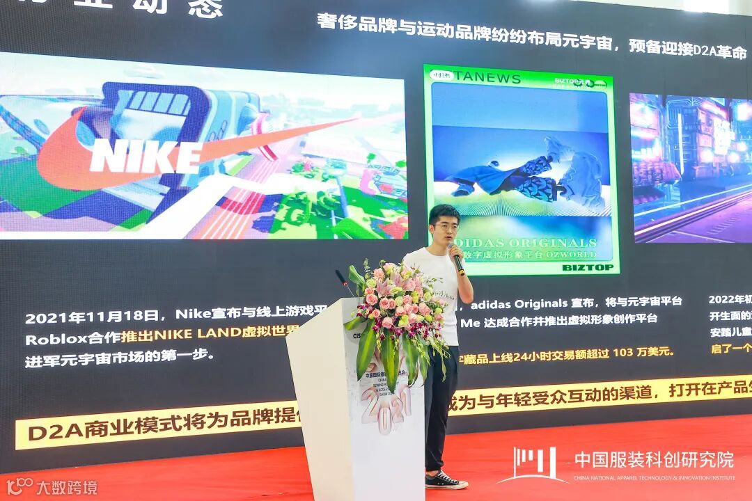 浙江凌迪数字科技有限公司3D数字化专家王晓亮以《共创:3D数字化未来》为主题讲解。王晓亮首先谈及国内外品牌数字化动态,奢侈品牌与运动品牌纷纷布局元宇宙,预备迎接D2A革命。D2A商业模式将为品牌提供额外收益流,成为与年轻受众互动的渠道,打开在产品生产前测试反馈的新机会。凌迪Style3D数字赋能,其中全国首批数字时尚领域国家标准, Style3D参与制定。“十四五”职业教育部委级规划教材,Style3D参与编著等等。最后王晓亮重点讲解了数字化转型解决方案,例如全链路数字化研发解决方案、数字化产品研发-3D设计开发解决方案等。