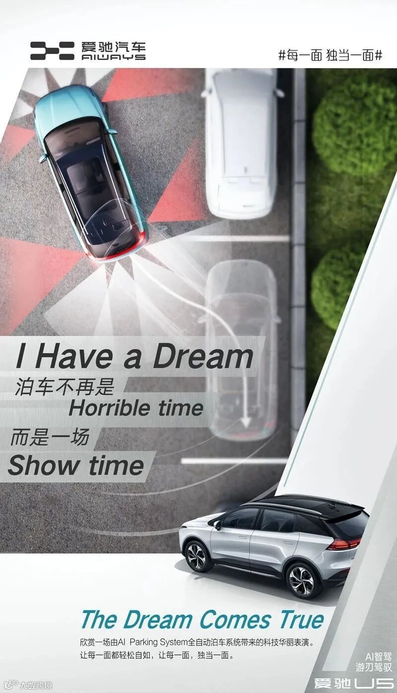 爱驰U5配备APA全自动泊车系统功能(AI Parking),时速30km/h以内,利用8颗短距超声波雷达和4颗长距超声波雷达对车位进行识别,并进行轨泊车迹测算;功能采用博世最新一代变频超声波雷达技术,能够智能调节输出频率,更加精确地对障碍物类型和高度进行探测,从而达到更高的泊车精确度和更快的泊车速度,并可适应灵活多变场景下的垂直及水平车位泊车,给用户带来全新的泊车体验。
