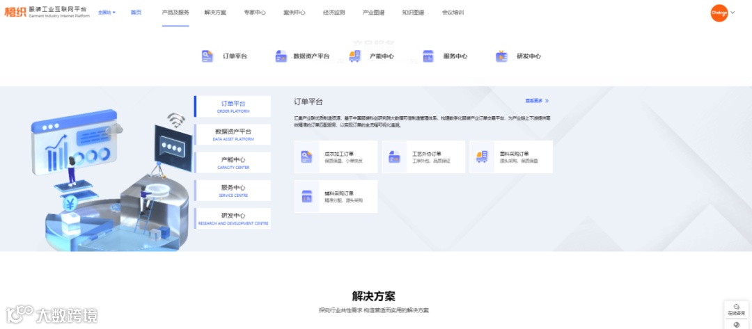 中国服装科创研究院利用互联网、5G、大数据、人工智能等新技术打造橙织服装工业互联网平台,创新开展服装工业互联网构建、打通客户研发到生产,打造独有的订单平台、数据资产平台,产能中心、研发中心和服务中心,解决供需关系,构建以“柔性快反”为特征的市场、研发、采购、制造、营销为主体的服装制造新模式,服务服装行业全产业链生态集群。