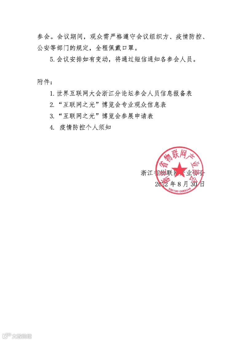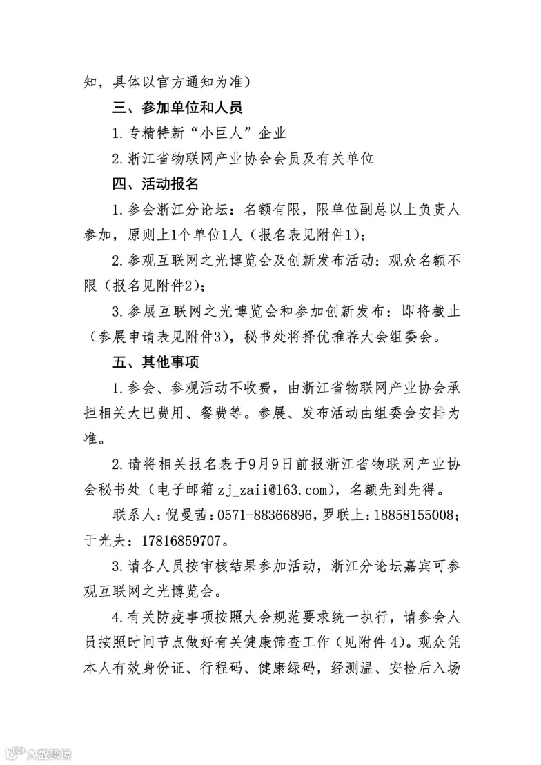 注:浙江省物联网产业协会统一组织的参观时间另行通知,最终名单以组委会审核为准。浙江省物联网产业协会邮箱:zj_zaii@163.com