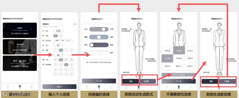 在人工智能技术的加持下,设计师通过大数据和人工智能中知识工程的相关理论和方法,对设计经验进行量化与建模;通过使用基于相关的知识模型所开发的系统,消费者可以简单输入个人信息与时尚偏好,系统能够自动组合设计出风格多样且个性化的服装,并且系统能够智能识别消费者对于设计方案的不满意之处,从而形成新的设计,所有与真人设计师可能进行的交互过程都可以实现。