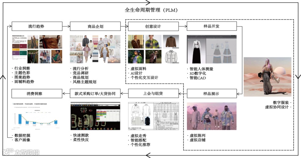 主要应用在以下方面:精准研发、研发设计工具的智能化升级、全生命周期管理、基础数据库之上的模块化设计、虚拟展示、数字服装及虚拟应用。