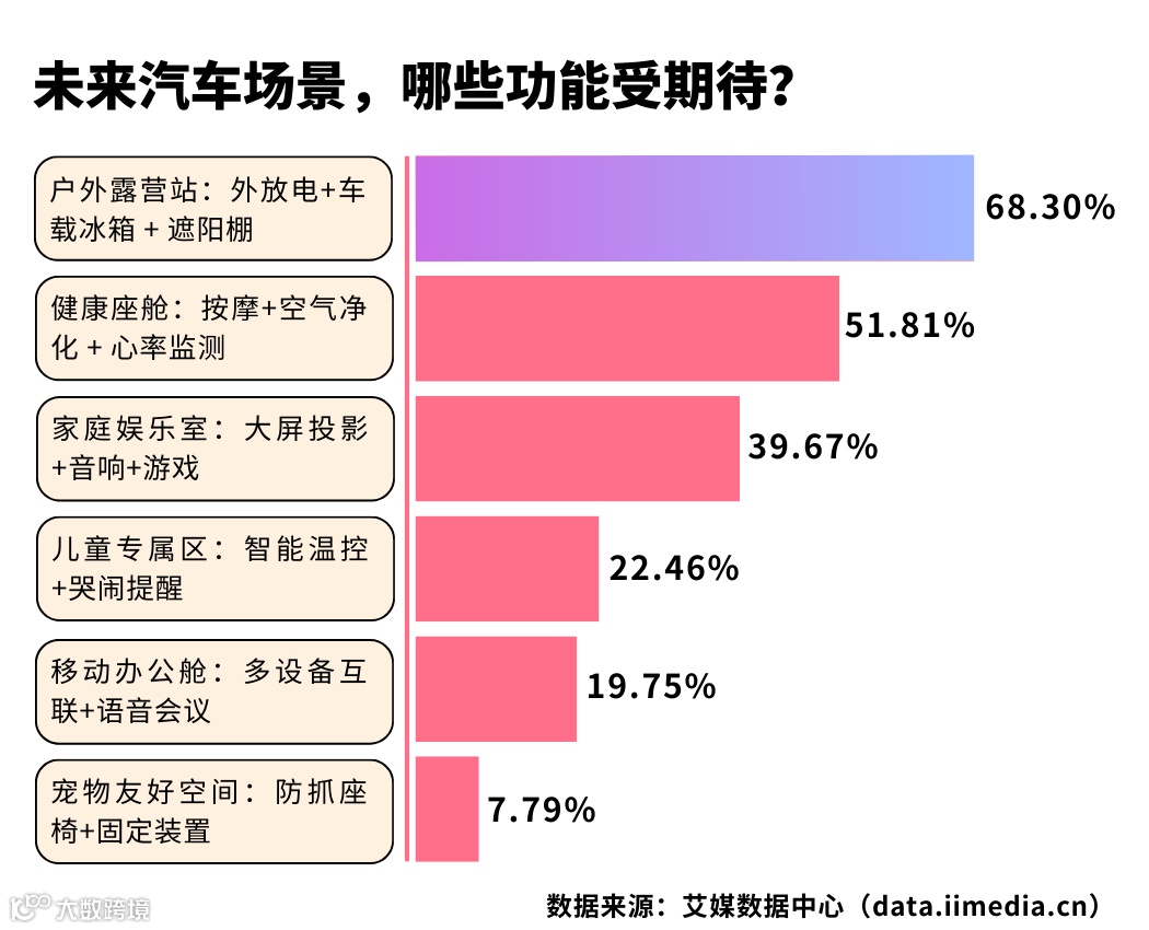 未来已来,未来正来。人们仍在呼唤着汽车能够给人以更大的惊喜。68.30%车主期待户外露营站的建设,健康座舱也受到51.81%人群的注目。而换电普及(43.12%)、超快充(16.49%),甚至无线充电全覆盖,都在诉说着未来车企的新挑战与市场广阔的前景。