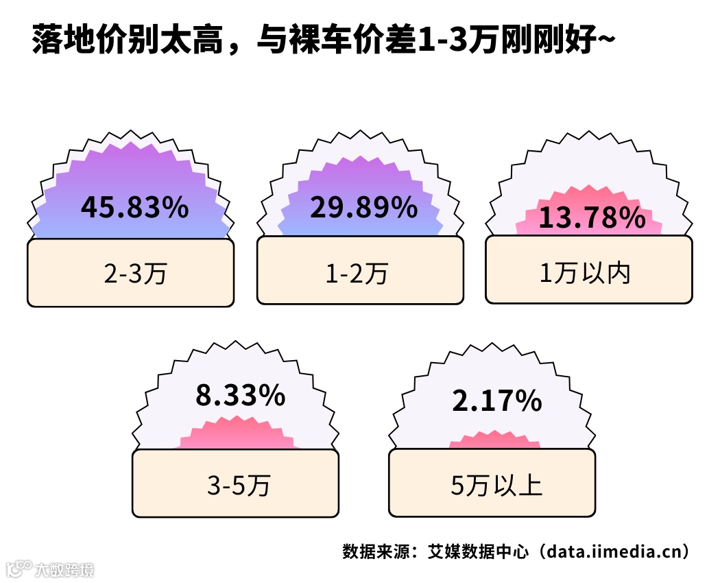 毫无疑问,汽车在所有人心中都是一个“大件儿”,背上车贷后可不能“吃土”。在裸车预算上,15-30万(74.64%消费者选择)兼具性能与实惠,落地也最好将差价控制在1-3万(75.72%),上能出门在外“倍有面儿”,下能精打细算省花销。