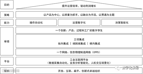 对智能制造的认识,我们可以通过工业4.0参考架构模型(RAMI 4.0)或智能制造成熟度模型等来获得,也可以将之绘制成类似于精益生产屋的“智能制造屋”框架模型。