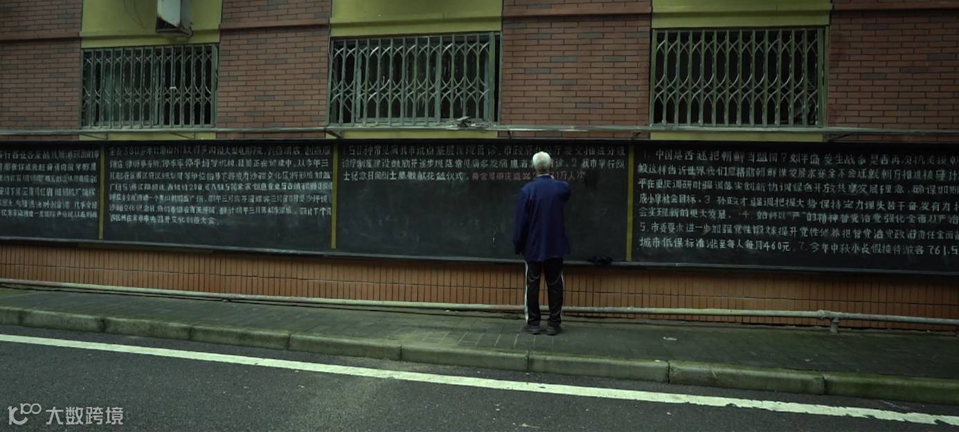 但是气归气,满头白发老刘还是每天清晨出现在黑板面前,一笔一划,一丝不苟的摘抄新闻,慢慢地去填满一块块空白的黑板。他伤心过,但释然了。他写字的初心没变,仍然喜欢写写画画,又能服务周边居民,他会继续写下去,风雨无阻。