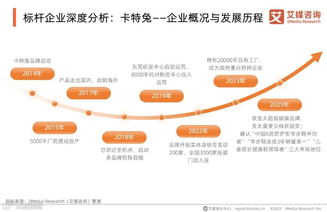 卡特兔(KATETU)成立于2014年,专注儿童鞋履领域,以“促进足部健康发育,陪伴各阶段成长”为核心,全渠道布局发展——覆盖天猫、京东等传统电商及小红书、抖音等内容电商平台,线下开设200家实体连锁专卖店并入驻3000+母婴门店。同时,自2017年以来积极拓展海外市场,先后在马来西亚、新加坡等国家及地区开设门店并获得海外消费者的认可。