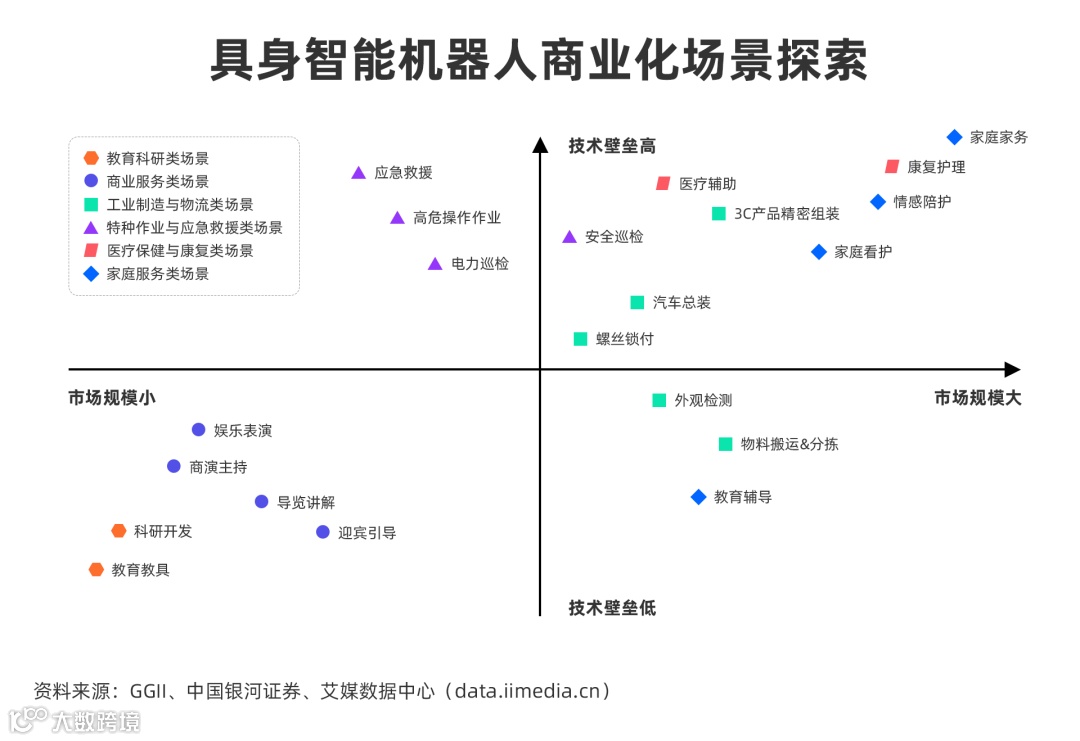 下游通过多场景应用释放产业价值,例如工业机器人在产线替代人工,医疗机器人辅助手术,家庭服务机器人承担家务,实现技术对各行业效率与体验的双重升级,是具身智能商业化的最终落点。