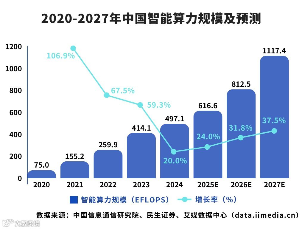 算力是具身智能落地的核心载体,影响着具身智能技术的发展速度、应用深度及落地广度。数据显示,中国智能算力规模正高速增长,2024年已达497.1EFLOPS,预计2027年将攀升至1117.4EFLOPS。算力作为“AI脑”高效运转的“燃料”,为具身智能在制造、服务、科研等场景的技术突破与广泛应用,提供了强大的计算支撑。