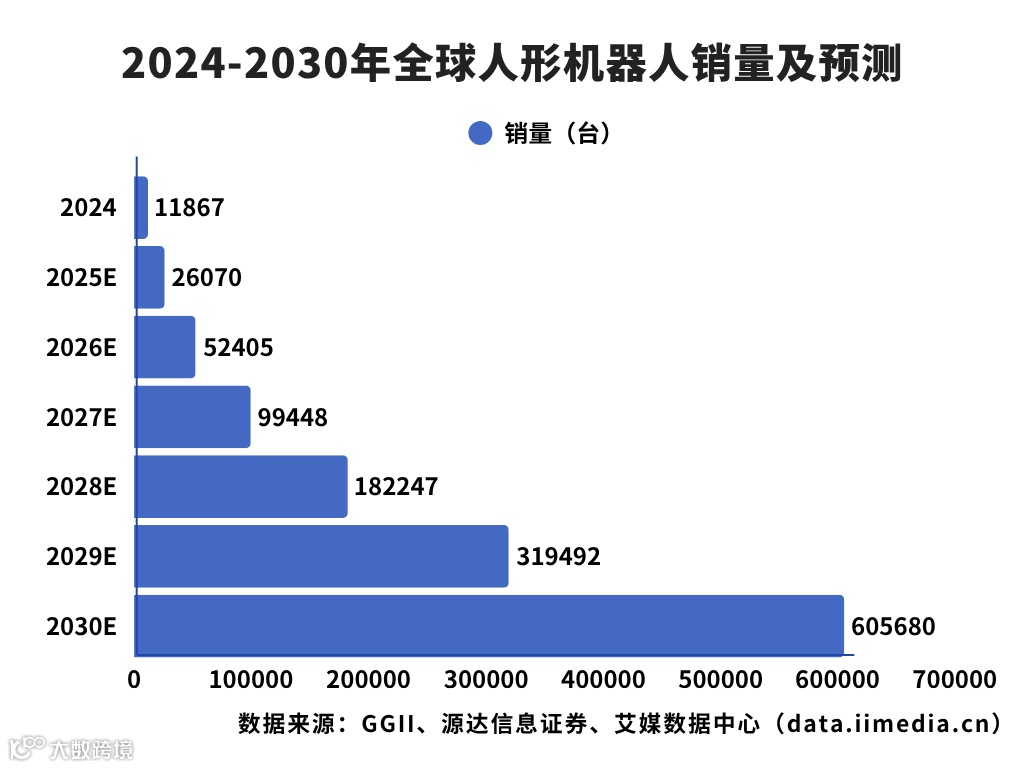 人形机器人作为具身智能的典型代表,是实现技术落地的核心载体,正迎来市场规模与应用场景的双重爆发。从全球市场来看,增长态势极为强劲。数据显示,2024年全球人形机器人产业规模为34亿美元,预计2029年将攀升至324亿美元;销量方面,2024年全球销量达11867台,至2030年有望增至605680台,年复合增长率高达92.60%。随着技术成熟,其商业化场景将进一步拓展至工业生产、教育服务、家庭生活等领域,既推动生产效率提升,也持续丰富应用价值。