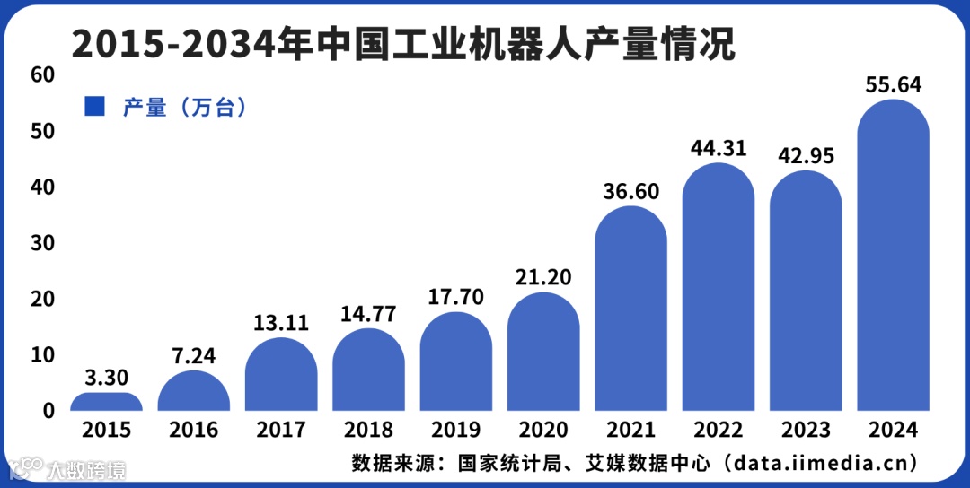 产量方面,2015年至2024年,中国工业机器人年产量从3.30万台增至55.64万台,10年增长超15倍,2024年国产工业机器人国内市场份额首次超过外资品牌。2025年前5个月,全国规模以上高技术制造业增加值同比增长9.5%,其中工业机器人产量同比增长32%,产业增长势头持续强劲。