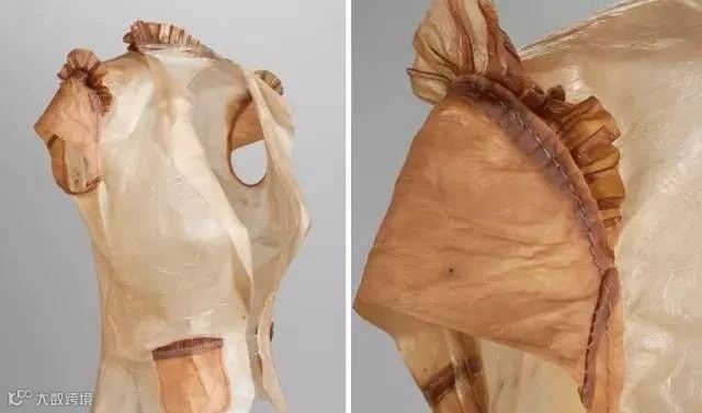 利用细菌和其他微生物生成的服装:Suzanne Lee使用的为红茶菌配方。简略说明流程,则是在加入红茶菌和其他微生物的共生混合物后,通过发酵会自行纺出纤维素,过了一段时间,纤维在液体中形成纤维层,最后在液体表面形成一块纤维毯,将其水分蒸发。通过这种方法便可以得到人工培育的面料了!这些衣服非常环保就像平常的瓜果皮和蔬菜同样可以自然地降解纯天然,无污染!