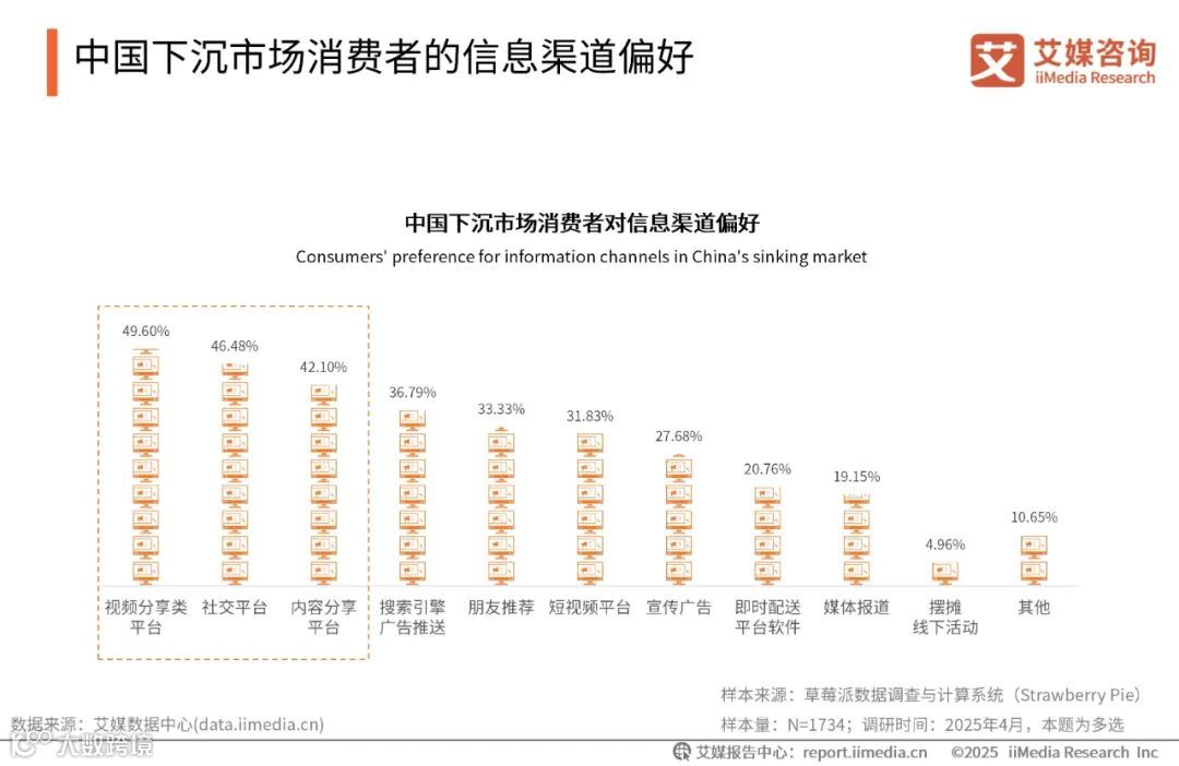中国下沉市场消费人群因充裕的闲暇时间和较慢的生活节奏,愿意花更多时间探索线下门店,对线下门店忠诚度较高。他们更注重性价比,倾向关注促销、折扣等优惠信息,并进行线上线下价格比较。此外,下沉市场消费者购物决策受熟人社交影响较大,亲友和邻里的推荐在购物决策中起到重要作用。