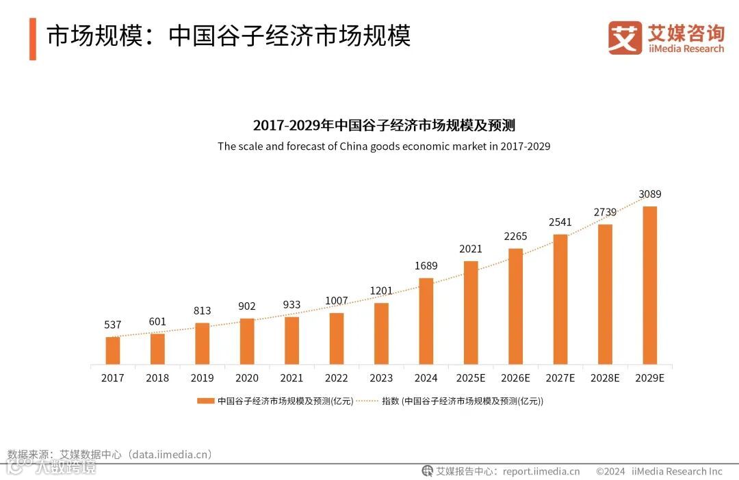 iiMedia Research(艾媒咨询)数据显示,2024年中国谷子经济市场规模达1689亿元,较2023年增长40.63%,预计到2029年市场规模将超过3000亿元。潮玩正成为吸引Z世代、重构商圈消费结构的核心力量。