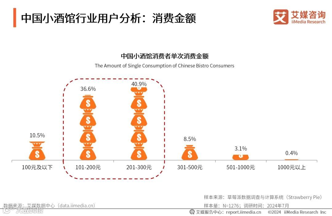 中国小酒馆行业用户分析:消费金额