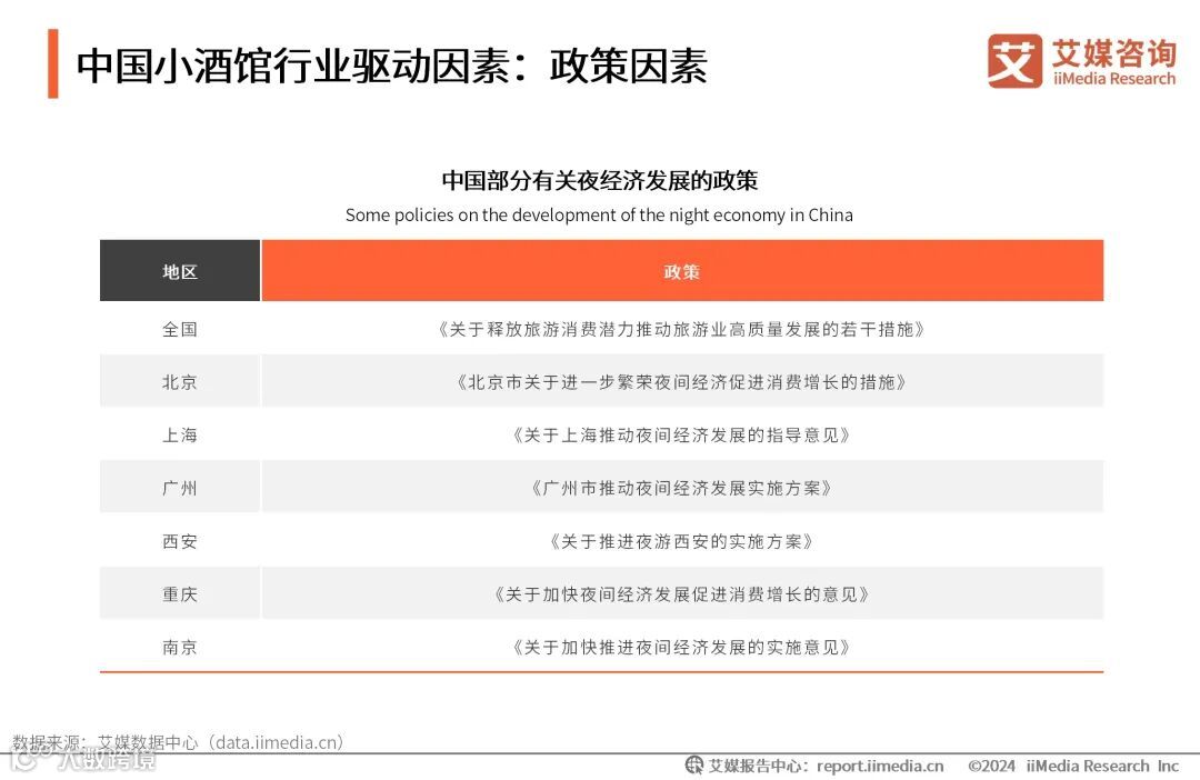 在中国鼓励消费政策逐步出台的背景下,中国各地方政府相继发布政策支持旅游及夜间经济发展,推动了小酒馆等夜间消费业态的兴盛。