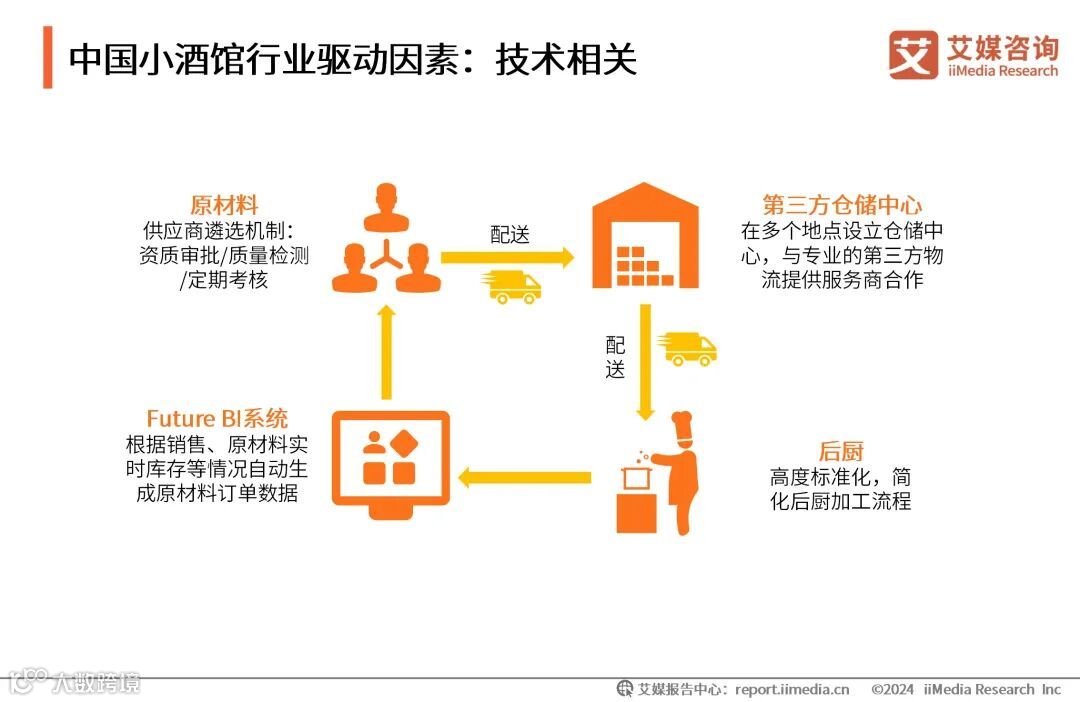 中国物联网、AI技术逐渐成熟,数字化赋能小酒馆行业,助力行业快速发展。部分连锁小酒馆企业处于快速扩张阶段,为了加强管理自主研发Future BI系统,融合前段ERP和CRM系统,对排队取号、下单备餐、存货物流、财务人事等进行全业务流程线上化、数字化、可视化分析与管理。