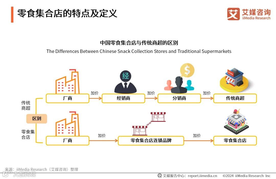 零食集合店是一种新型的零售模式,它去除传统休闲食品经销商的中间环节,直接从工厂采购或贴牌生产产品。与传统零售模式不同,零食集合店绕开了中间环节,直接对接厂商,让利于消费者。此外,零食集合店不向品牌方收取进场费、陈列费、条码费和促销费,让利于厂商,使得产品价格更具竞争力。