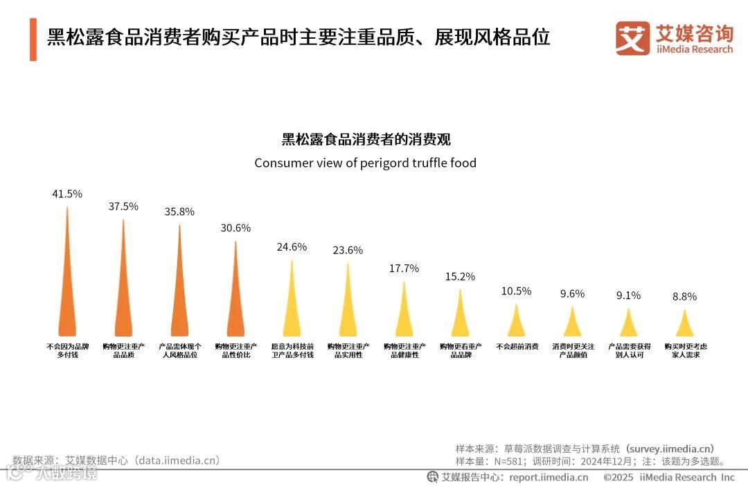黑松露食品消费者购买产品时主要注重品质、展现风格品位