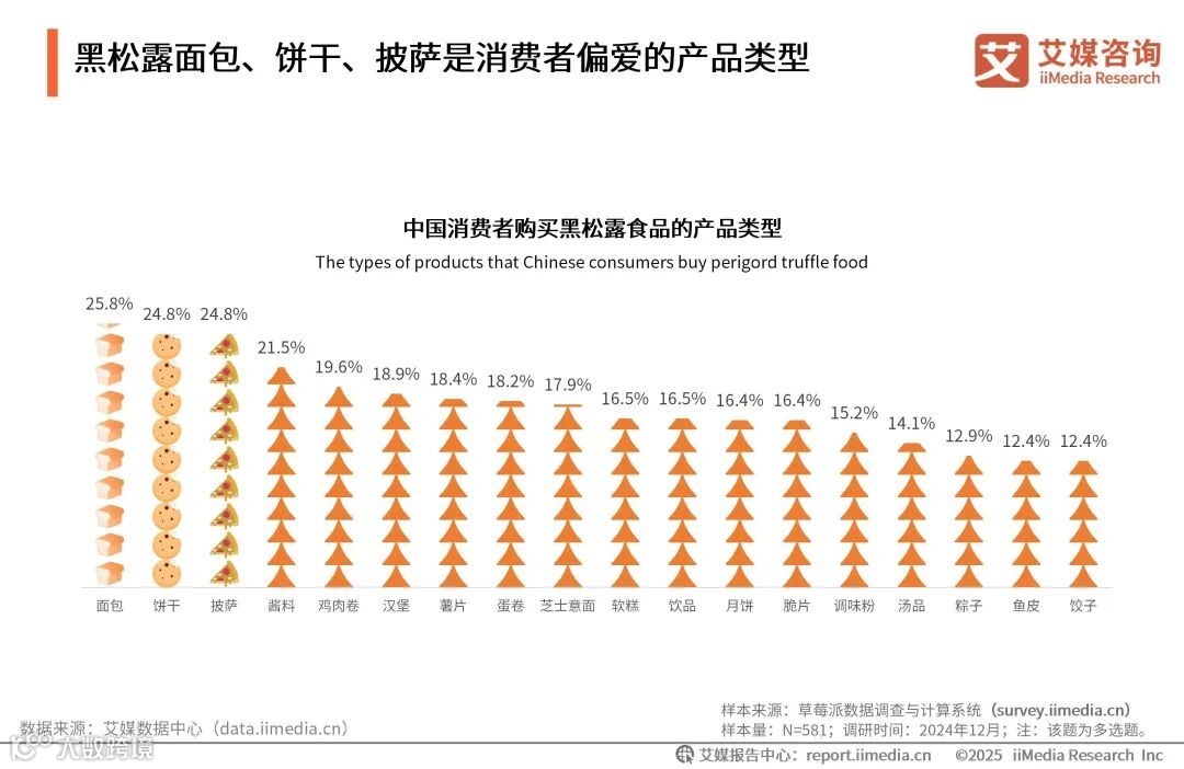 黑松露面包、饼干、披萨是消费者偏爱的产品类型