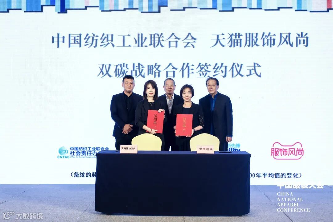 天猫女装、内衣行业总经理 孙苏也就“绿色时尚”展开分享了天猫服饰风尚的洞察。同时,中国纺织工业联合会社会责任办公室与天猫服饰风尚现场正式签约达成“双碳”战略合作,携手推进时尚气侯创新2030行动。