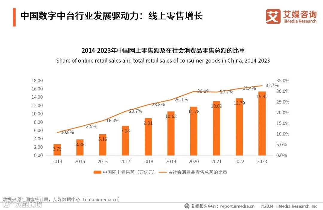 中国数字中台行业发展驱动力:线上零售增长