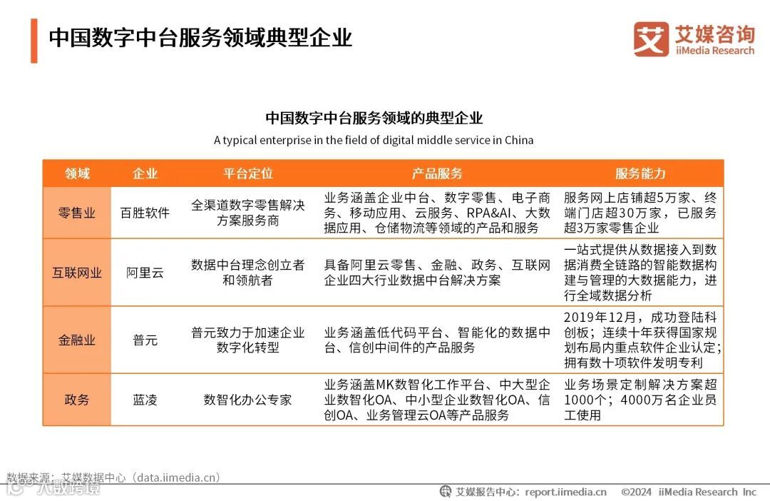 中国数字中台服务领域典型企业