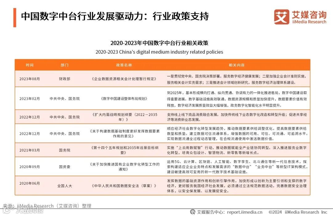 中国数字中台行业发展驱动力:行业政策支持