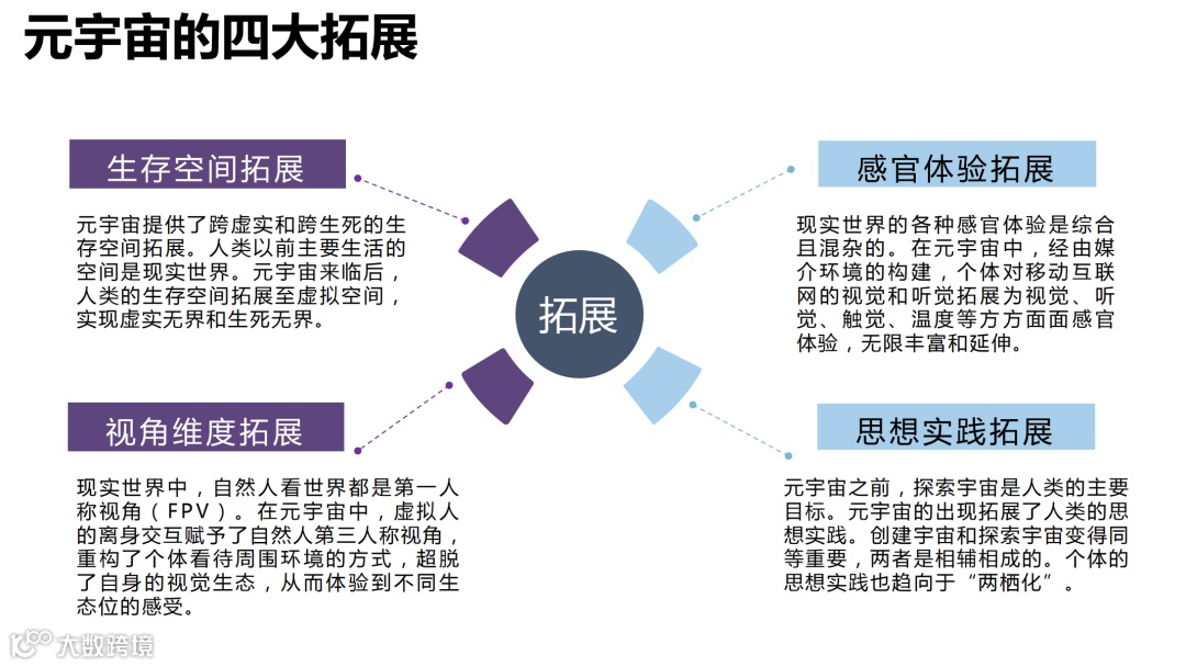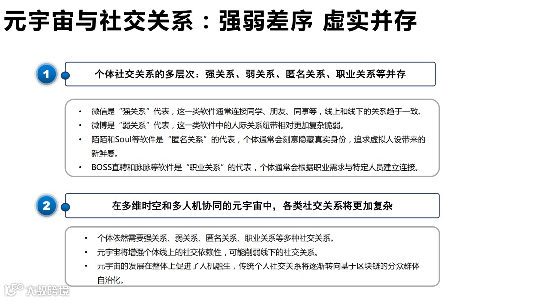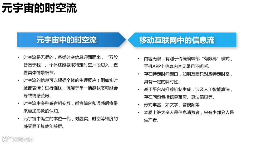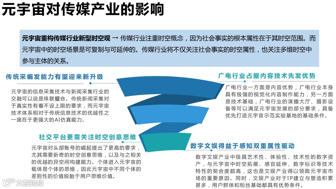 元宇宙重构传媒行业新型时空观 → 传媒行业注重时空概念,因为社会事实的根本属性在于其时空范围。而元宇宙中的时空场景是可复制与可延伸的。传媒行业将不仅关注社会事实的时空属性,也关注多维时空中参与主体的关系。