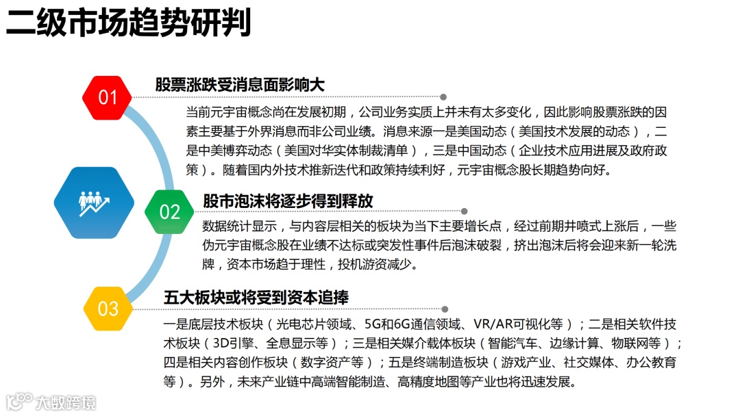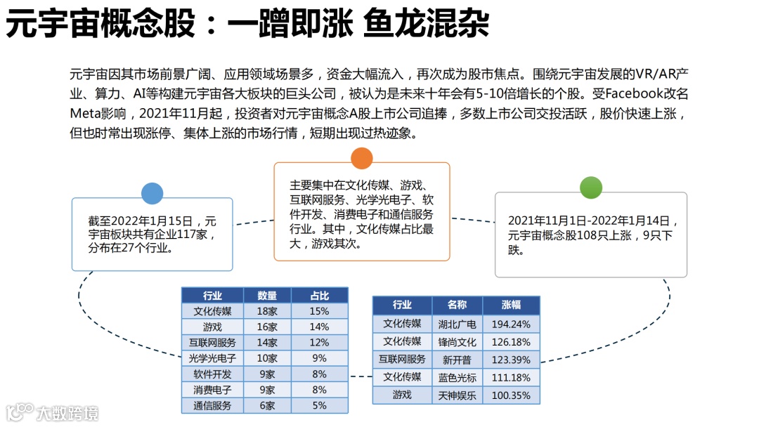 广电行业一方面是内容优势, 广电行业本身具有极强的视觉化内容制作能力, 另一方面是技术基础, 广电行业的演播大厅、摄影设备等可以满足元宇宙发展的部分要求, 具备优先打造元宇宙示范实验基地的基础条件。