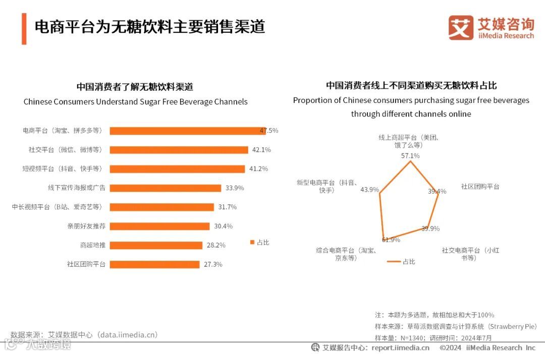 电商平台为无糖饮料主要销售渠道