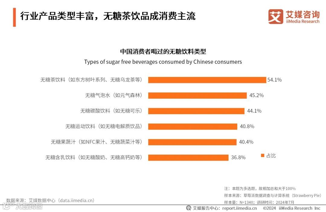 行业产品类型丰富,无糖茶饮品成消费主流