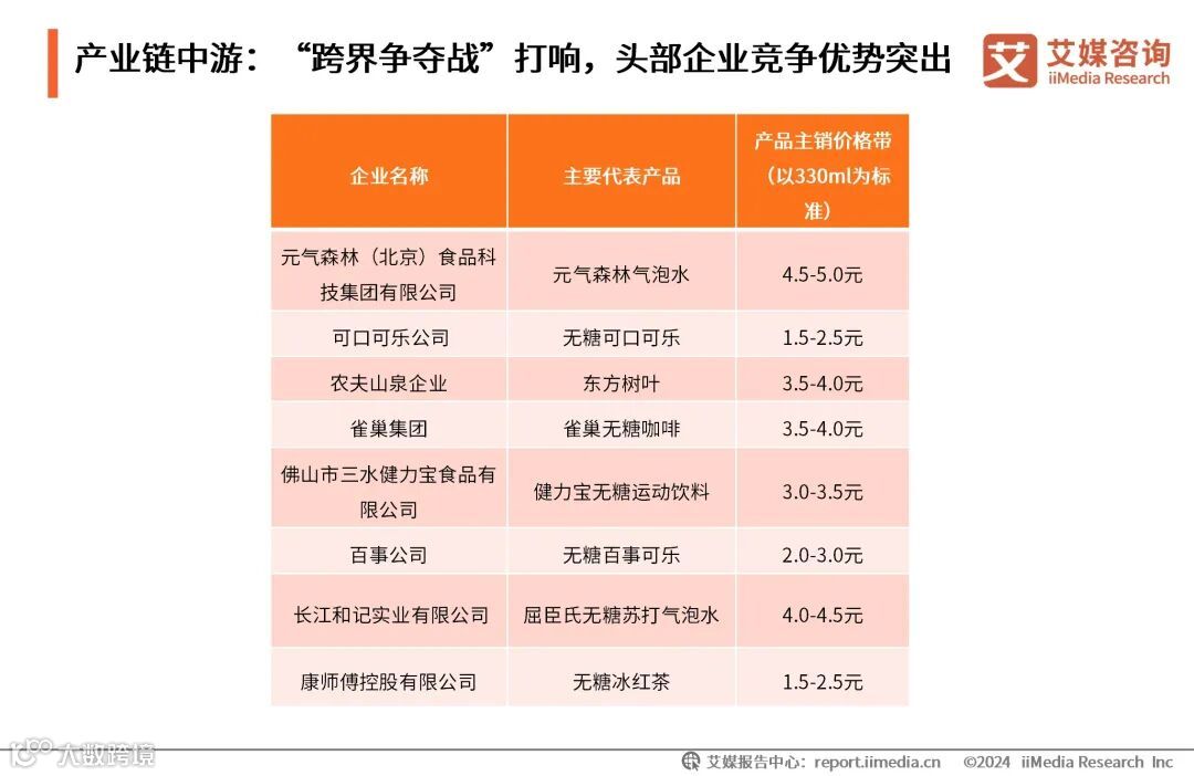 中国无糖饮料产业链中游品牌图谱